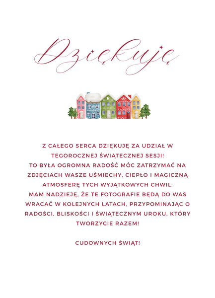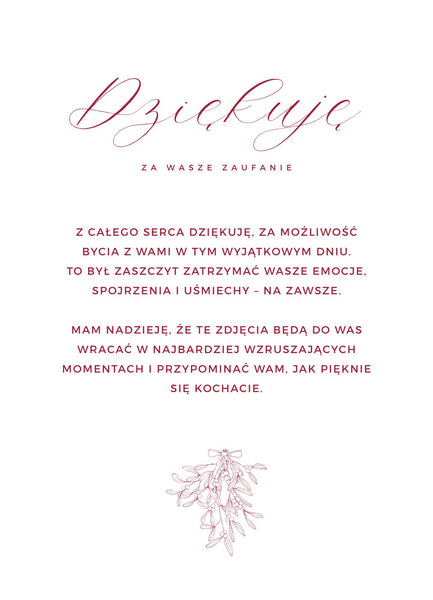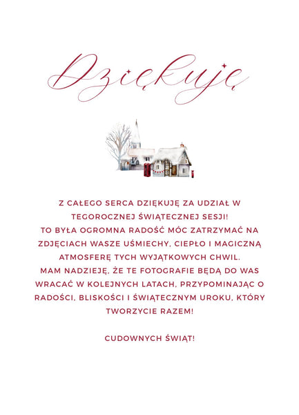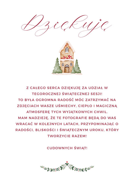 Minimalistyczne podziękowanie z delikatnym, bożonarodzeniowym akcentem – drukowane na matowym papierze w formacie 13x18 cm.